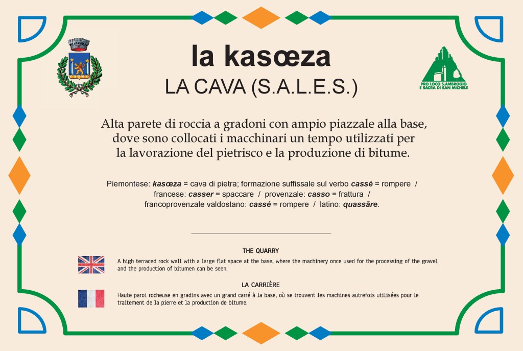 Discostandosi di poco dall’itinerario costituito dalla discesa della ferrata lungo l’Antica Mulattiera, è possibile scoprire le più importanti tracce (evidenti o nascoste) del passato di Sant’Ambrogio, che costituiscono un ulteriore modo per capire il suo legame con la Sacra di San Michele.