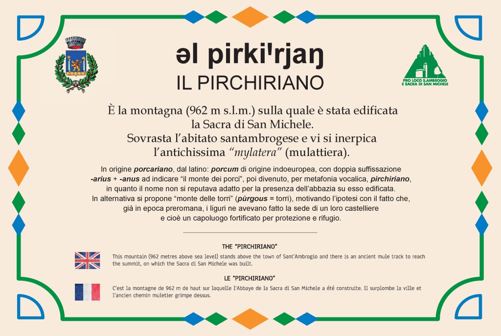 Ammirando la Sacra di San Michele: Sant’Ambrogio di Torino è un paese di quasi 5.000 abitanti che sorge ai piedi del Monte Pirchiriano, all’imbocco della Val di Susa, e che da sempre è strettamente collegato all’Abbazia simbolo della Regione Piemonte, non solo dalla via ferrata ma anche dall’antica mulattiera e dalle vicende storiche del passato comune.